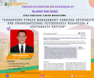 Program Doktor Studi Kebijakan FISIP Universitas Andalas mengucapkan: Selamat dan Sukses kepadaNika SaputraMahasiswa Program Doktor Studi Kebijakan atas keberhasilan dalam mempublikasikan artikel ilmiah berjudul:“Enhancing Public